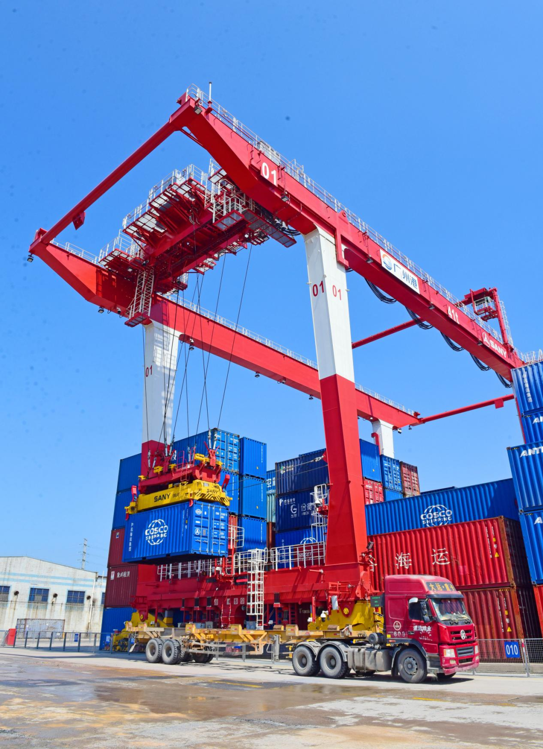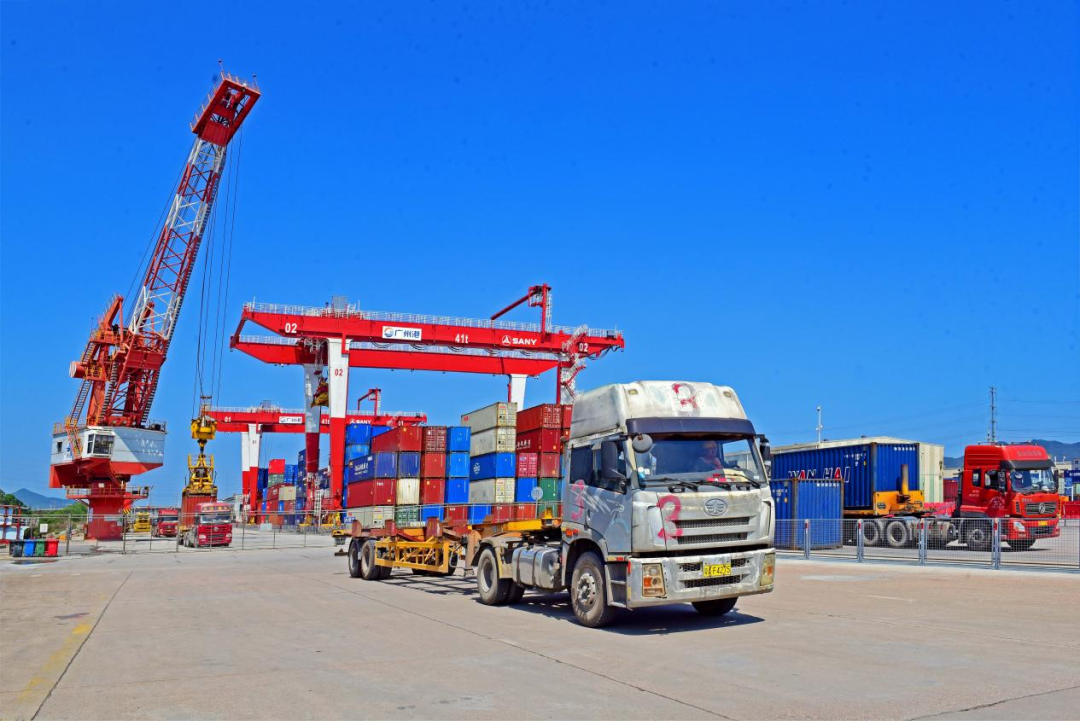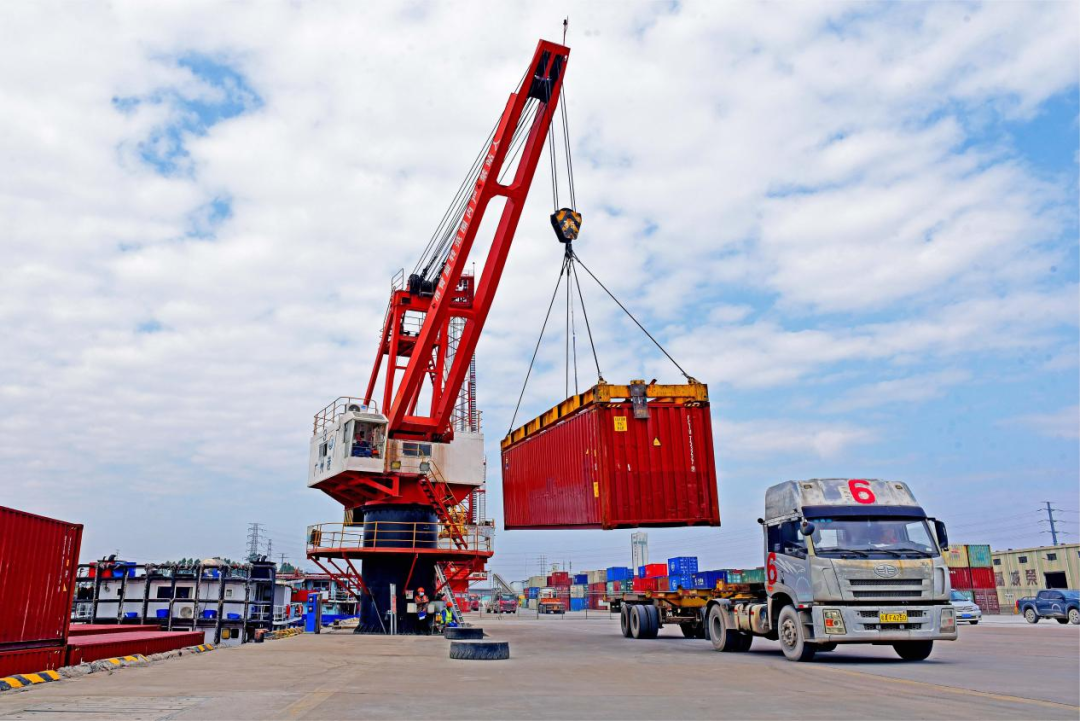 一个个标准集装箱被有序、精准地