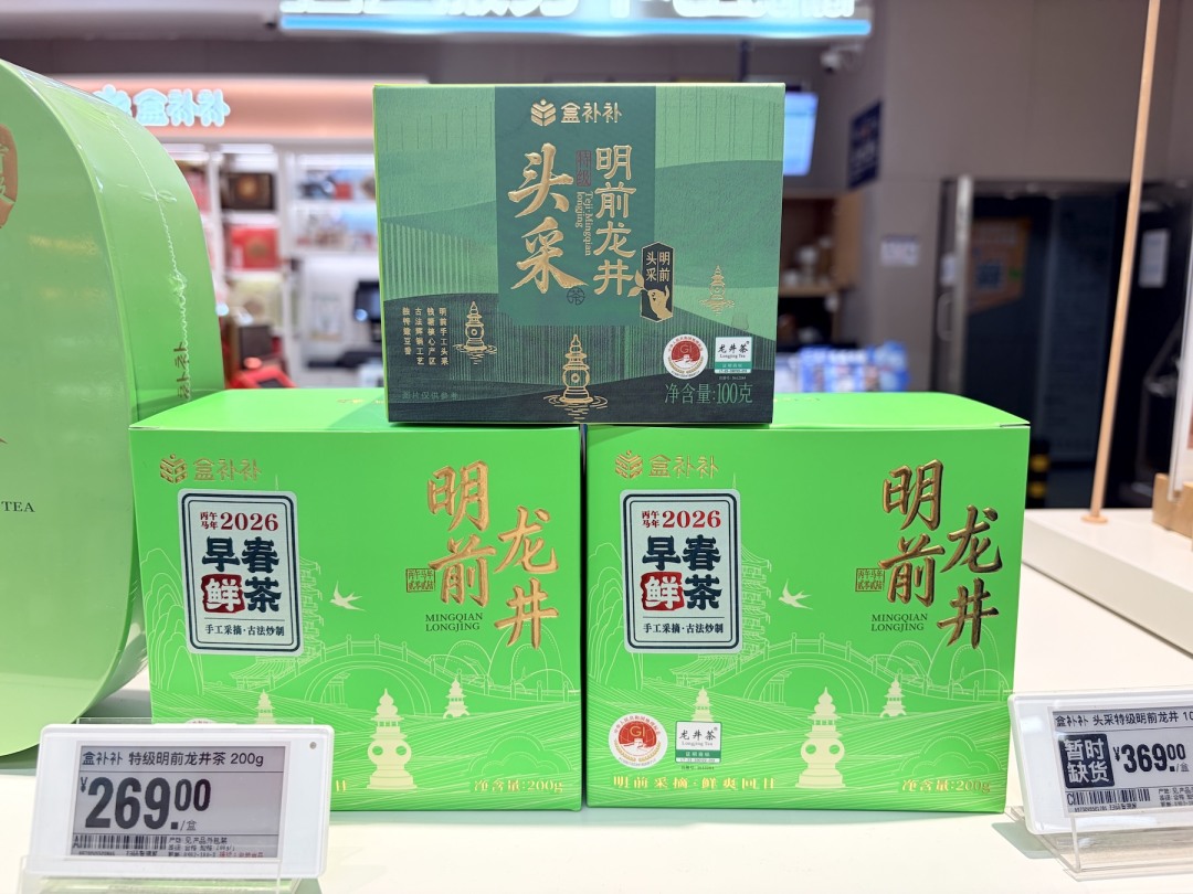 过往,业内有句话叫“好茶不出江浙沪”——稀缺的龙井头采茶大多在核心产区的“小圈子”里就被消化,外地消费者要么买不到,要么不敢买。今年,盒马旗下自有品牌“盒补补”把产量仅占龙井茶1%的“头采明前龙井”送出江浙沪,通过一套从采摘、炒制到配送的高效链路,送往全国“盒区房”。