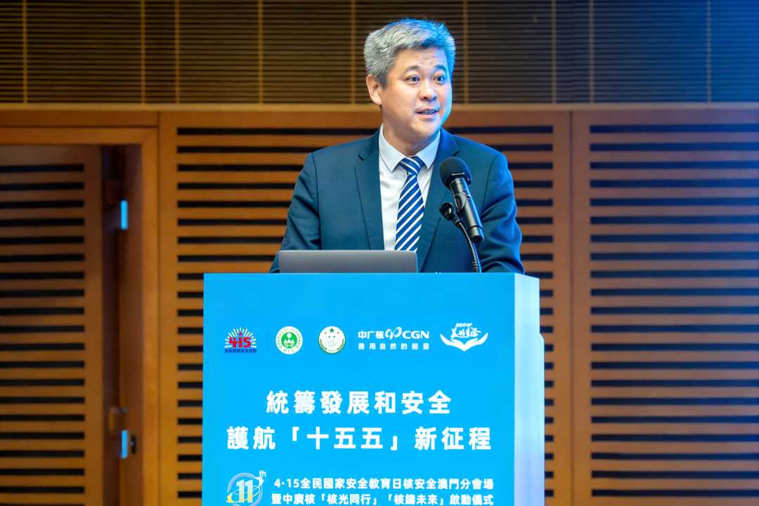 刘丹在致辞中表示,核安全是国家安全的重要组成部分,是能源安全、生态安全与公共安全的关键防线,更是保障大湾区民生福祉、支撑区域高质量发展的坚实根基。台山核电自投运以来,始终坚守“核安全是生命线”的初心,以最高标准、最严要求筑牢核安全屏障,保障机组长期安全稳定运行。他指出,此次活动落地澳门,既是践行总体国家安全观、落实全民国家安全教育的务实举措,更是深化粤澳两地协同联动、共筑区域核安全防线的重要实践。同时,寄语青年学子种下科学探索、家国情怀和绿色担当的种子,携手筑牢核安全防线,共护大湾区绿色发展。