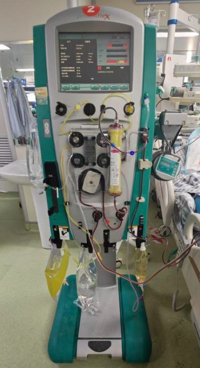 考虑到男子病情危重,消化内科紧急请重症医学科会诊,并将他转入ICU救治。科主任茹晃耀当机立断,立即组织为他实施血浆置换治疗。