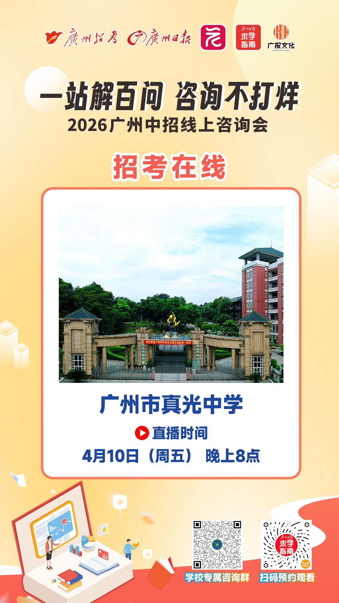 2026广州中招线上咨询会“招考在线”视频直播将于4月10日(本周五)晚上8点,在广州日报新花城客户端、广报求学视频号、广报升学俱乐部视频号等平台重磅上线。