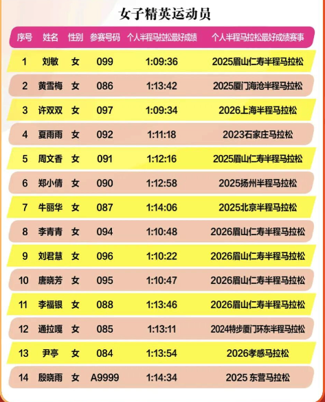 此外,去年收获北京半程马拉松国内冠军的陈中平本周末再次参赛,去年全运会马拉松银牌得主高鹏也将参赛,而去年北京马拉松国内季军的杨章兴同样会参加此次半程马拉松。而女子精英选手除了夏雨雨之外,征战过巴黎奥运会10000米赛场的许双双、由大众跑者脱颖而出的黄雪梅、今年无锡马拉松半程冠军李青青、不久前收获扬州半程马拉松国内亚军的郑小倩等都将亮相。