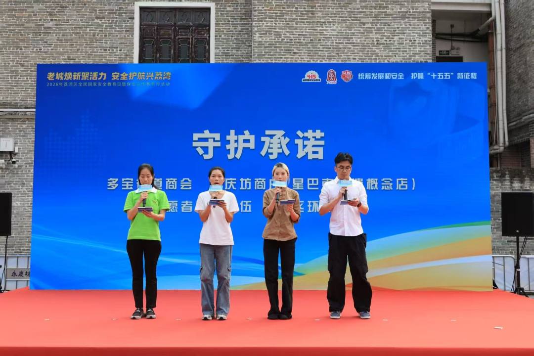 2026年是“十五五”规划开局起步之年,4月15日将迎来第11个全民国家安全教育日。为深入贯彻总体国家安全观,推动国家安全理念、保密意识深入人心,4月10日下午,广州荔湾区在永庆坊举办“老城焕新聚活力 安全护航兴荔湾”2026年全民国家安全教育日暨保密宣传教育月主题宣传活动,以情景展演、点位宣传、游戏互动等群众喜闻乐见的形式,推动国家安全和保密宣传走进千家万户、融入日常生活。