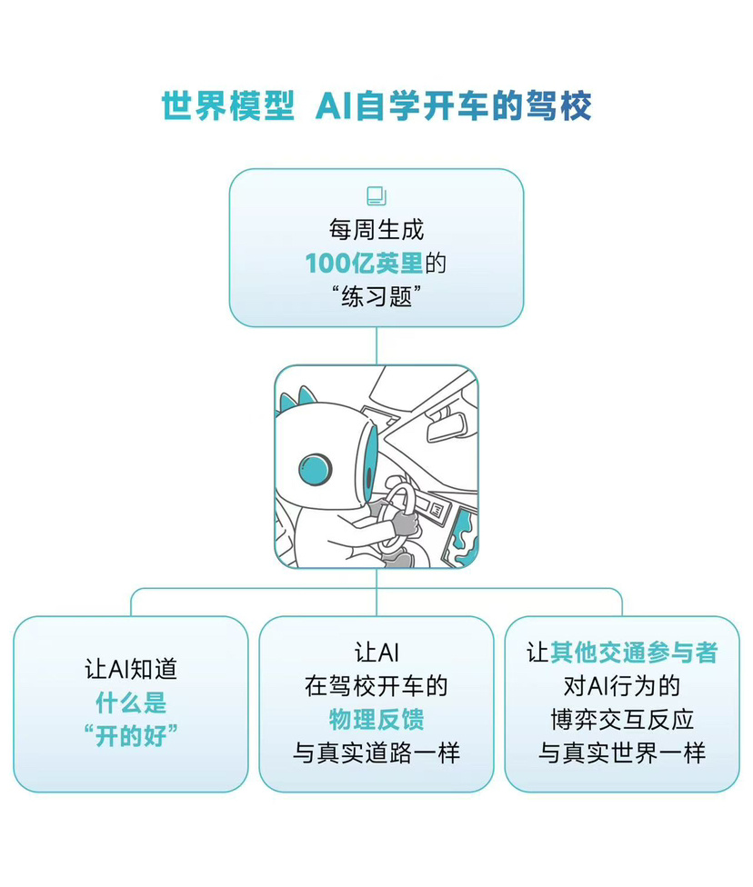 只有世界模型的精度足够高,AI司机才可以在这个环境中取得正向训练结果,否则AI模型的驾驶能力可能越学越错,甚至还不如引入海量人类驾驶数据的模仿学习。通过世界模型,小马智行提升自动驾驶能力的过程,本质上也是提升世界模型精度的过程。
