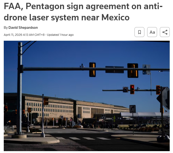 4月10日,美国联邦航空管理局与五角大楼宣布,根据双方达成的协议,美国军方可在南部美墨边境地区使用一套高能激光反无人机系统。