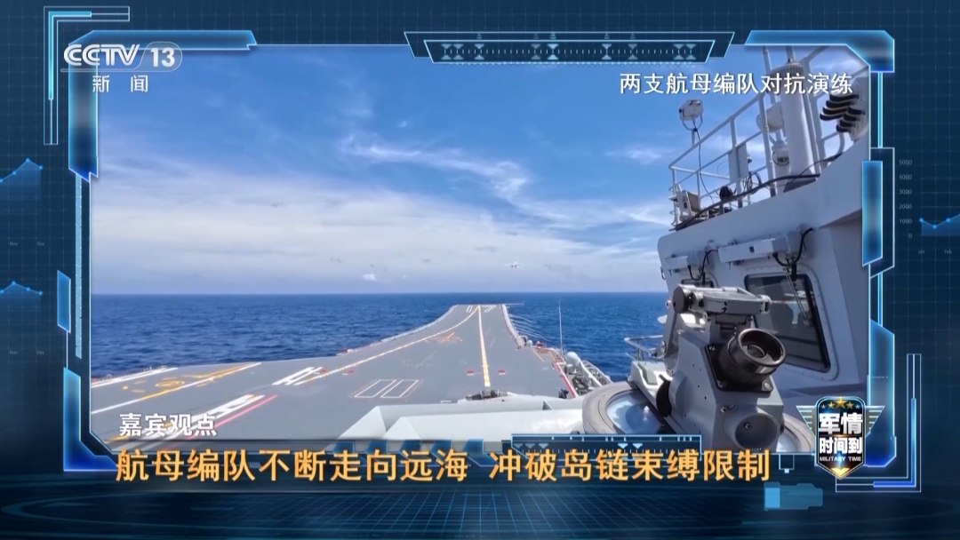 总台军事观察员 魏东旭:远海作战能力实现,首先要能够“走出去”,另外一个要有很强的控制力。人民海军的航母作战体系一直处于发展状态,不能仅仅只执行近海和沿岸的防御作战任务,一定要“走出去”。当航母编队走向远海的时候,就意味着整个的海上作战体系,可以冲破岛链的束缚和限制,有一个更大的战略活动的空间。一方面可以打破对方的海空封锁和围堵,另外一方面也可以带动更多的兵力奔向制胜的方向。