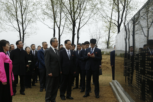 王毅感谢朝方为保护修缮在朝中国人民志愿军烈士纪念设施所作努力,表示要将此作为传承鲜血凝成的中朝传统友谊的基地,教育两国后代继承发扬志愿军的奉献精神,为中朝关系发展提供强大的精神动力。