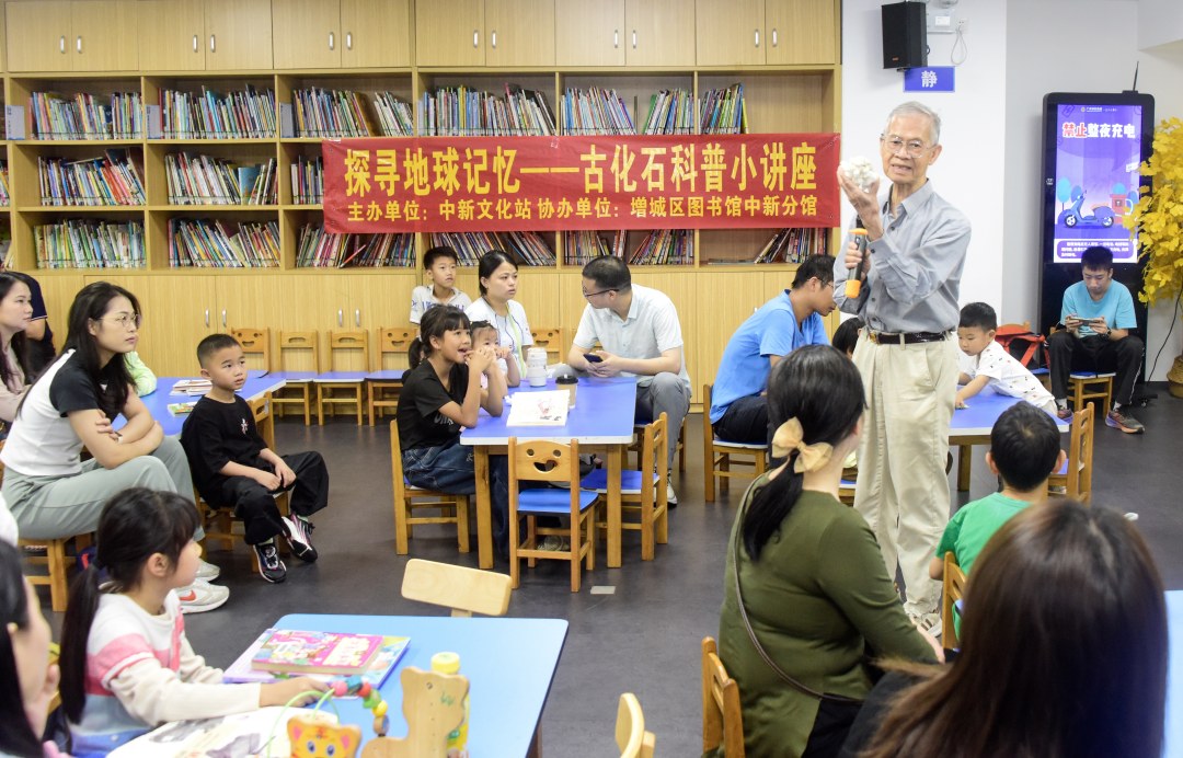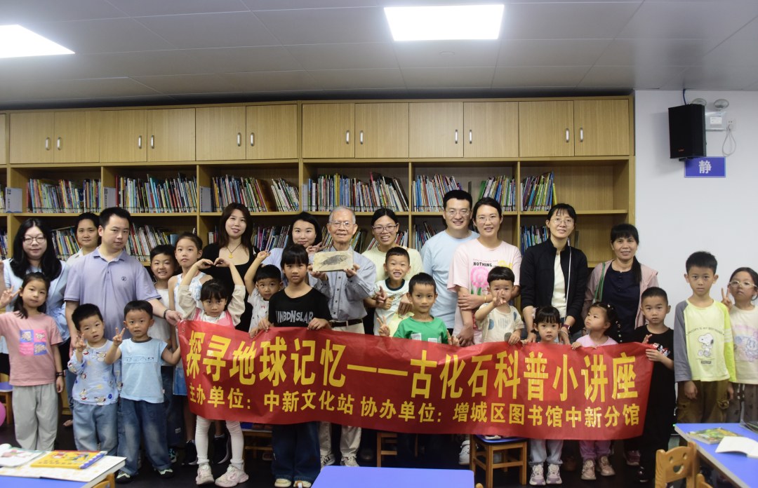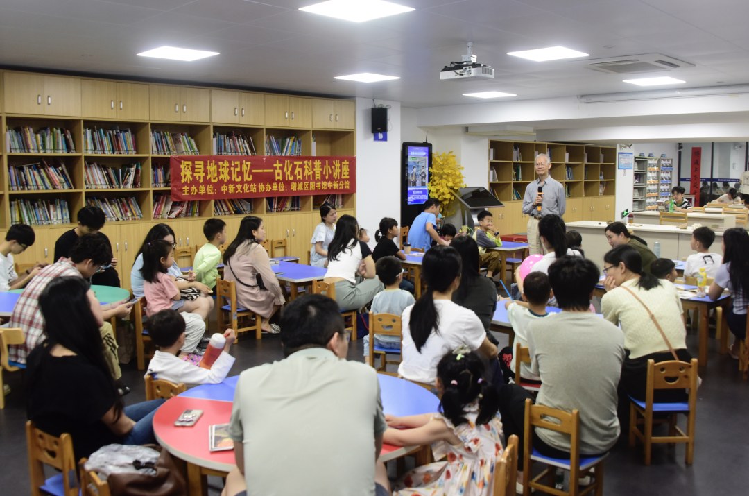 当天,由中新镇文化站主办,增城区图书馆中新分馆协办的“探寻地球记忆——古生物化石科普小讲座”在这里举行,吸引了不少青少年和自然爱好者前来参与。