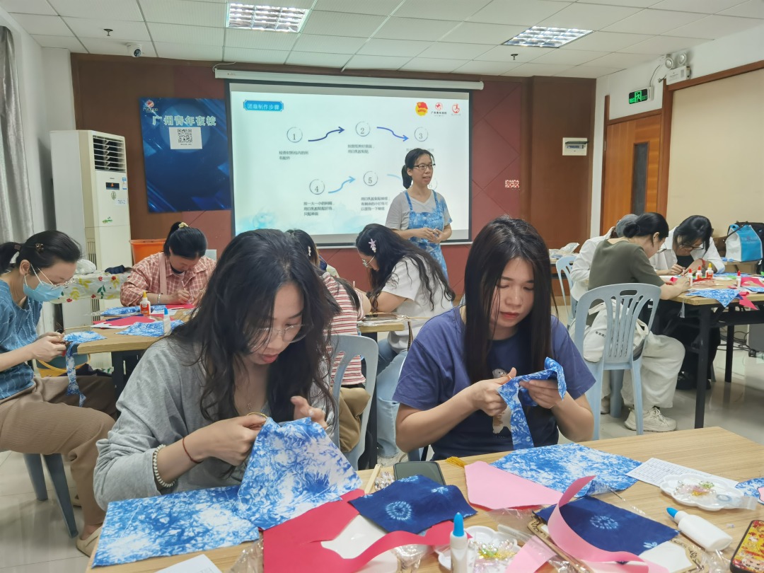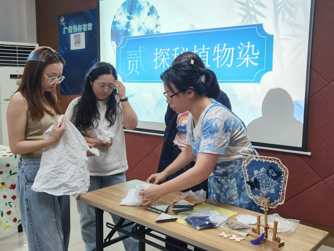 广州市青年文化宫开展广州青年夜校植物染团扇制作公开课,