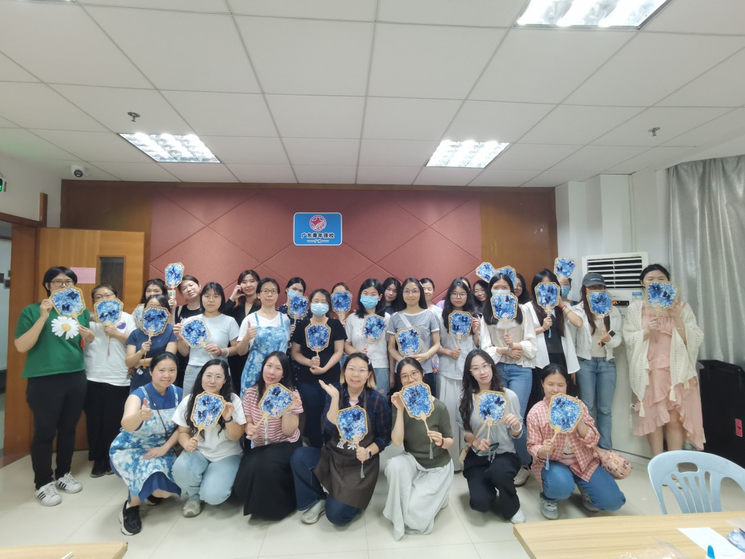 学员们手持亲手制作的植物染团扇合影,定格非遗传承与青春风采,彰显岭南文化底蕴。