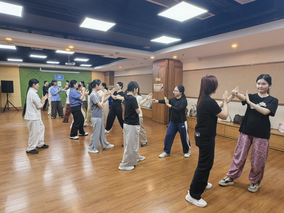 青年夜校米机王咏春拳技能提升课上,学员们在梁倩影老师指导下练习咏春拳法,沉浸式感受岭南传统武术的招式精髓与武学匠心。