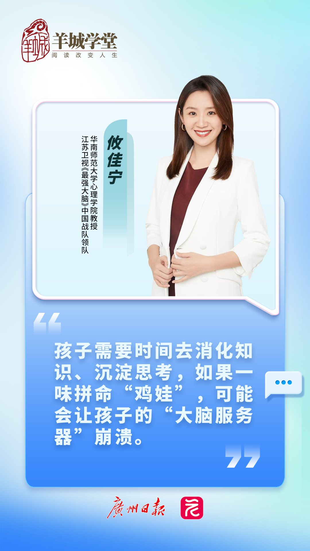 孩子需要时间去消化知识、沉淀思考,如果一味拼命“鸡娃”,可能会让孩子的“大脑服务器”崩溃。
