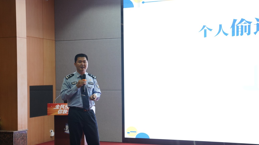 广州海关缉私局赖名金警官作反走私普法宣讲。