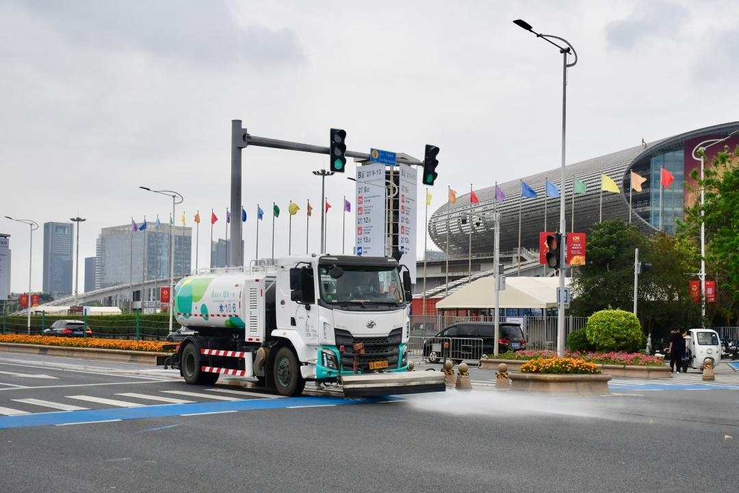 “一方面,在展会开幕前,我们采用人机协同保洁方式,对辖区内主次干道、人行道、交通护栏等进行全方位清洗和深度保洁,营造干净整洁城区环境。展会期间,将全面加强区域内大型酒店及展馆周边巡回保洁工作,以‘绣花功夫’提升城市环境卫生。另一方面,联合琶洲街道、展馆物业管理单位,建立了‘巡查发现—沟通反馈—响应处置’高效闭环机制。物业管理单位在日常巡查中发现问题及时反馈,街道迅速响应,针对‘六乱’、非机动车乱停放等难题开展联合整治,形成管理合力,确保展馆周边环境整洁、秩序井然,为全球客商营造一流的市容环境。”海珠区城管部门相关负责人介绍。