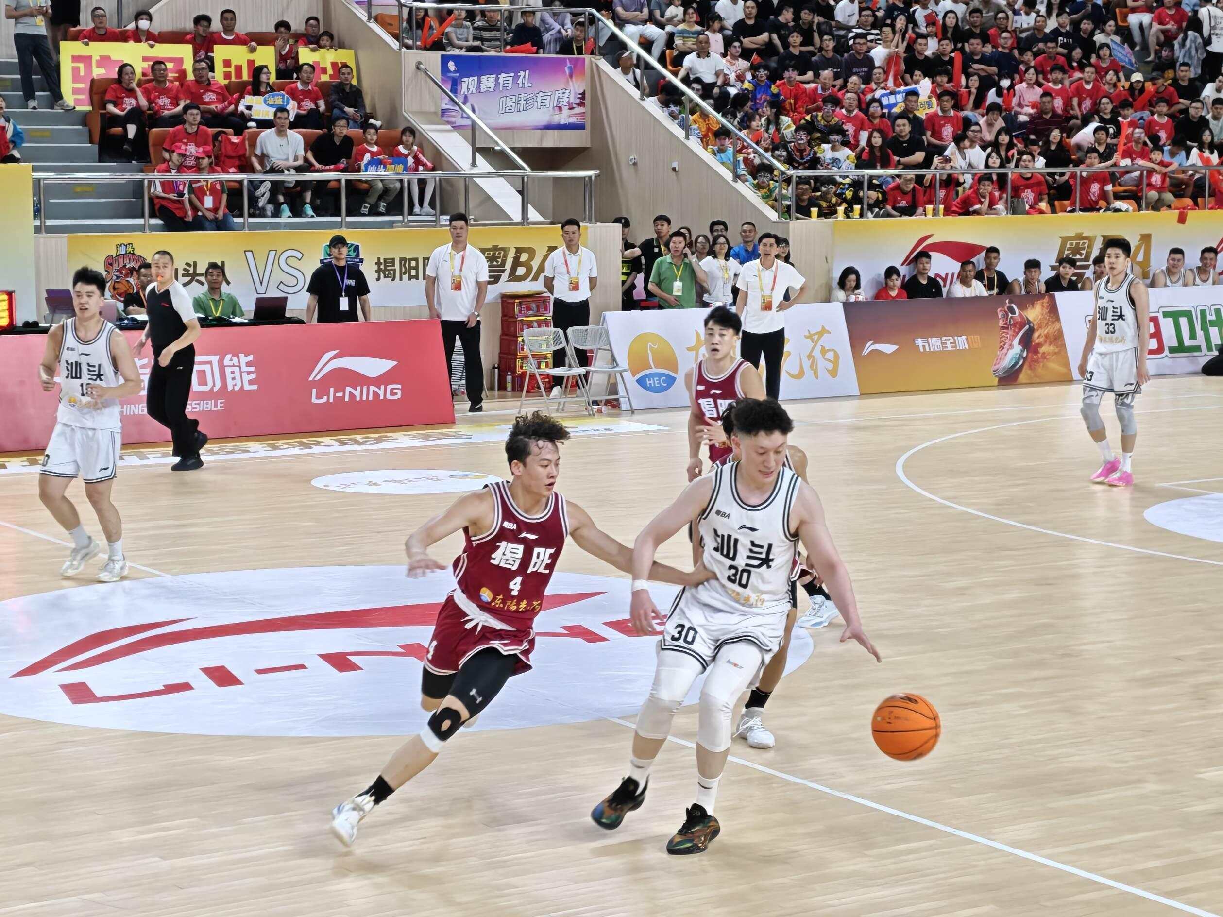 两队此前均为一胜一负,“潮汕德比”上演一场激烈的卡位争夺战。同根同源的“胶己人”兄弟对垒,输赢皆是潮汕赢。全场比赛攻防胶着、比分紧咬,比赛伊始揭阳队反客为主建立领先优势,汕头队开局一度陷入被动,随后全队顶住压力奋起直追,双方你来我往、高潮迭起,献上一场极具看点的本土篮球盛宴。最终,汕头队以111比104力克对手,拿下主场胜利。