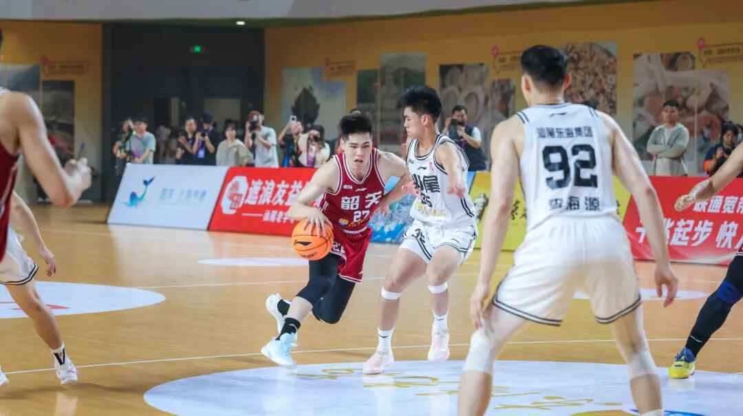 韶关队率先发难。持球队员一路突破杀入篮下,强行上篮命中,还博得一次罚球机会,先声夺人。这支由80后老将李涛压阵的球队,从第一个回合就亮出了自己的底色:节奏稳、防守硬、外线准。6号陈伟东在首节便命中一记冷血三分,如同丹霞绝壁上探出的苍松,不声不响间就扎稳了根基。