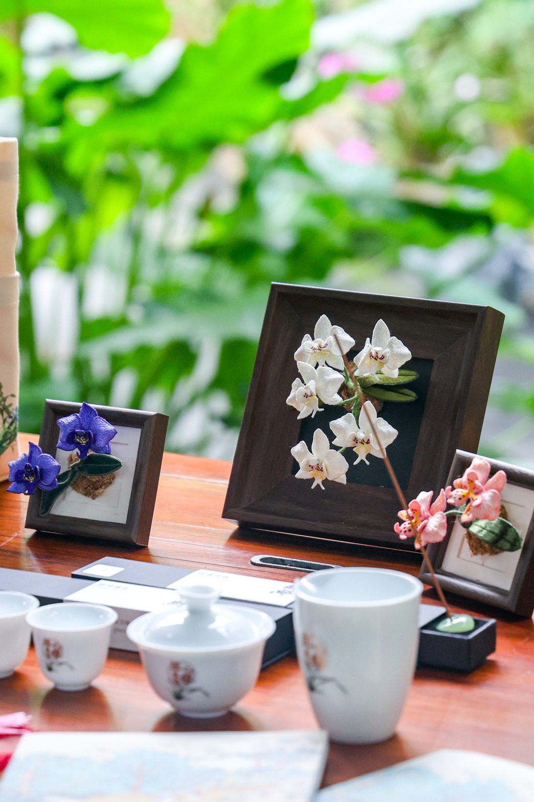 四雅养心调五感,一方净土沁心脾。兰圃推出涵盖金(净肺安神)、木(疏肝解郁)、水(凝神静气)、火(暖心提气)、土(健脾稳心)五大主题精品课程,包含自然人文游园导览、非遗插花、茶艺品鉴、香道体验、颂钵音疗等。同时邀请中医养生专家为游客提供体质辩症等康养服务,开展针灸(董氏奇穴针法)、通草画、曾氏榄雕、广彩、象牙微雕、广式插花、合香、景泰蓝等非遗代表性项目体验活动。南粤先贤馆铜拓古建体验课,一锤一錾叩响非遗历史,带来一场“手作修行”;五仙观紫烟阁邀请香云纱传承人,现场摩擦不同阶段的香云纱面料,揭秘“三洗九煮十八晒”中的化学与物理变化;越秀区图书馆以《王羲之笔法论:原理和示例》书稿为蓝本,系统解构书圣笔下的技法密码;高剑父纪念馆以“剑父茶”为媒介,通过茶道表演与茶文化推广,将艺术与生活美学相结合,彰显传统文化的当代价值;东山湖公园在湖心岛举办兰花实景科普展,开展兰花主题的自然研学课堂;荣宝斋融合艺术分享、非遗展演与沉浸式体验,展出近百件当代花鸟画作品,特邀非遗代表性项目“莞香制作技艺”传承人黄欧团队现场演示隔火熏香、合香制作技艺,观众可亲手制作花朝节主题香包。六榕街道以“兰花”为主题,从材料拆解、图案定位,到竹片拼贴、装框固定,一步步带学员解锁传统竹编工艺的乐趣。