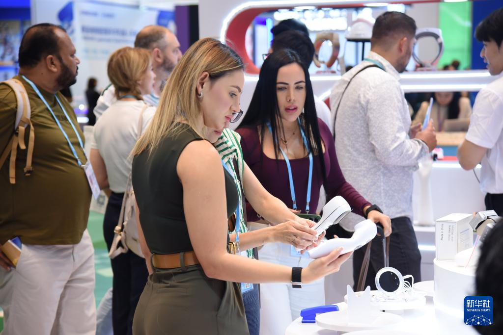 资料图:2025年10月31日,以“美好生活”为主题的第138届广交会第三期开幕,图为客商在广交会智慧医疗专区查看展品。新华社记者 洪泽华/摄