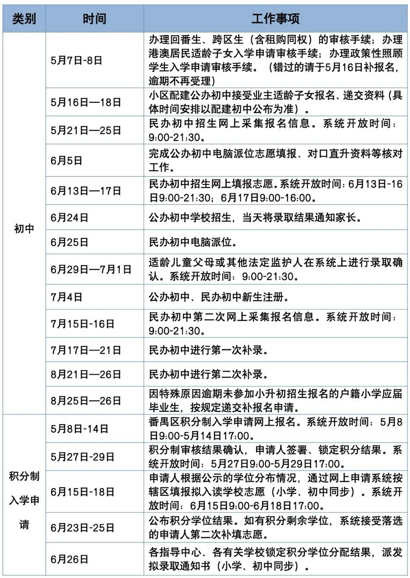 (备注:如需调整时间的,将另行通知,请密切关注“广州番禺教育”微信公众号发布的招生信息。)