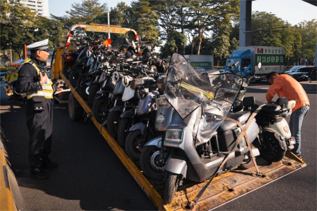 “针对部分驾驶人拆卸号牌、遮挡号牌、故意规避执法等行为,今年以来,我们在重点地铁口、主干道、外卖站点等区域累计扣留无牌电动自行车13.63万辆,同比大幅上升。”广州交警介绍,交管部门紧盯闯红灯、逆行、不按规定车道行驶、涉牌涉证、非法改装等突出违法行为,开展“攻坚01”专项整治行动,设置固定整治点位128处、“羊城铁骑”巡逻组320个,开展路面执法,累计现场查处各类电动自行车交通违法108.07万宗,同比上升91.17%。