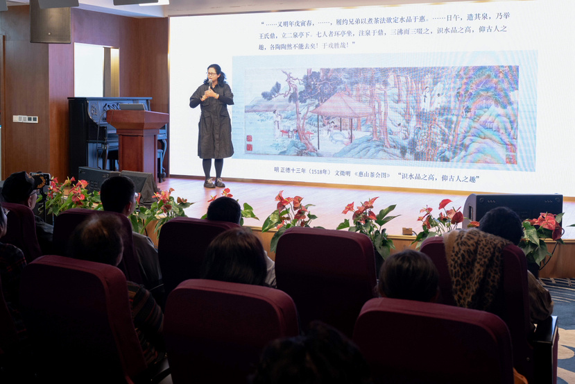 明正德十三年(1518年),文徵明与友人相约无锡惠山的“天下第二泉”品茶,众人或坐于泉亭之下,或列鼎煮茶,或山径信步,呈现出一种从容不迫、游乐山水的闲适心境。在张海岚的讲述中,现场观众仿佛也感受到那份“陶陶然不能去矣”的惬意。