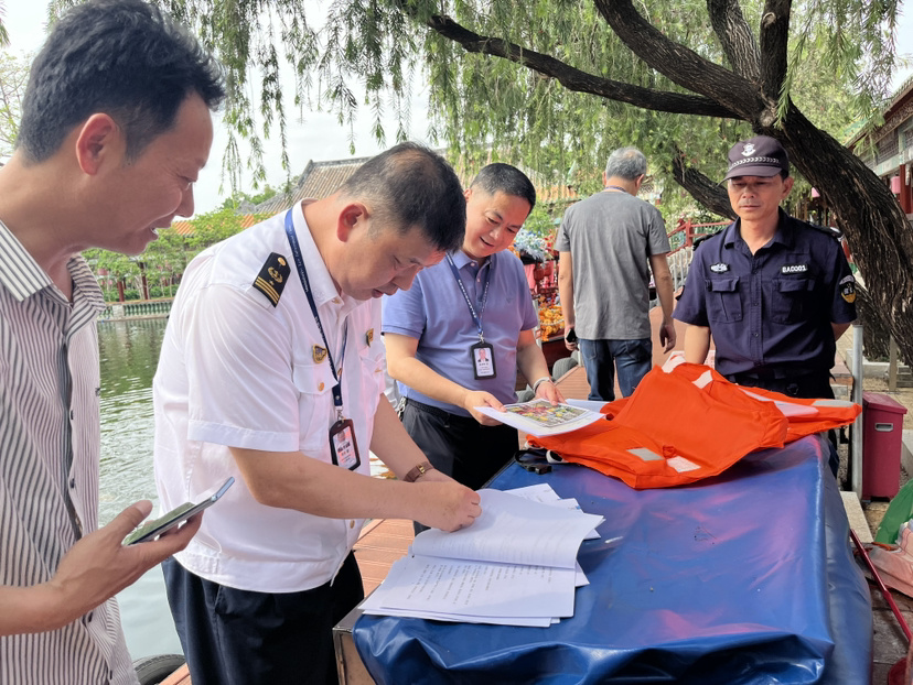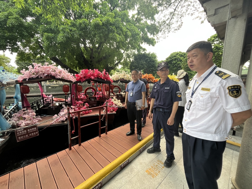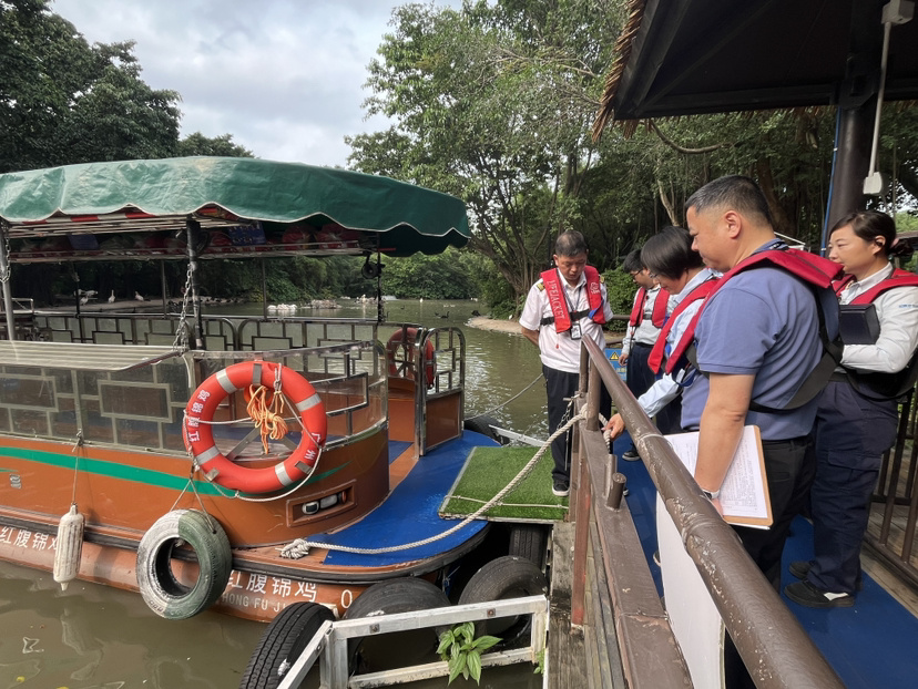 为筑牢水上旅游安全防线,4月10日,广州市番禺区水安办组织开展专项检查行动,番禺海事处、区文广旅体局、区应急管理局联合对宝墨园景区进行安全检查“回头看”,并对长隆飞鸟乐园开展汛期暑期专项排查整治检查。