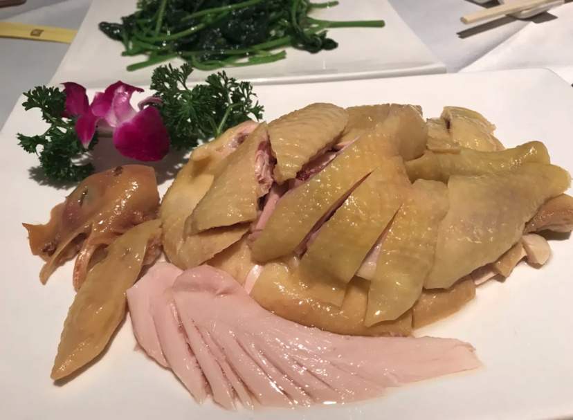 • 钧泰酒店的“钧泰白切鸡”严选养足240天的山上放养走地鸡,古法浸煮,搭配秘制姜葱蓉,真正“鸡有鸡味”。