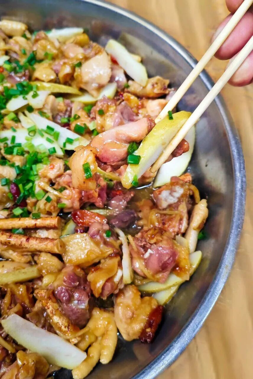 经砂锅焖炒,大蕉软糯入味,鸡肉金黄诱人,裹满蕉香与浓郁酱汁,下饭真是一绝!