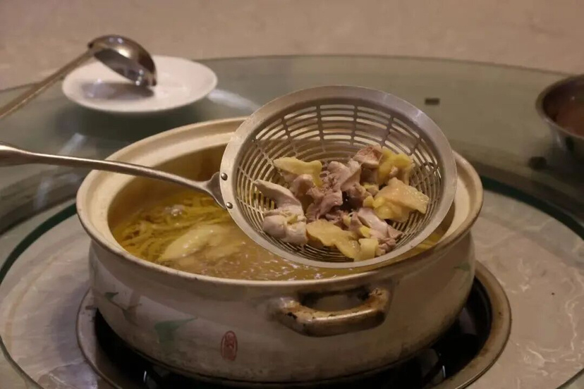 鸡还能“捞”着吃!七彩捞鸡将“捞”的仪式感与鸡肉食材结合,既保留广式饮食“不时不食”“以鲜为美”的精髓,又通过创新配菜突破传统边界,形成“老味道新表达”的特色。