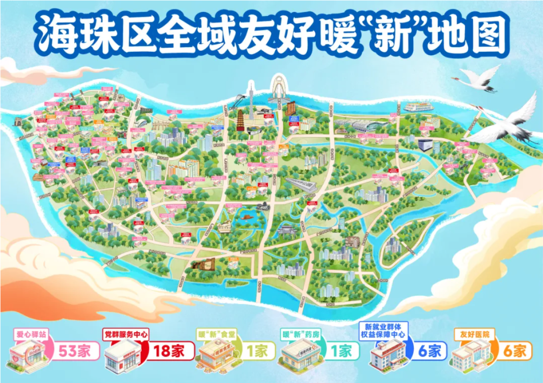 近日,新就业群体“全域友好”场景发布会在广州市第二工人文化宫举行。活动发布海珠区全域友好“暖‘新’地图”。该地图集成全区85个暖“新”服务阵地,涵盖新就业群体权益保障中心、新就业群体友好医院、党群服务中心、暖“新”食堂、暖“新”药房等。