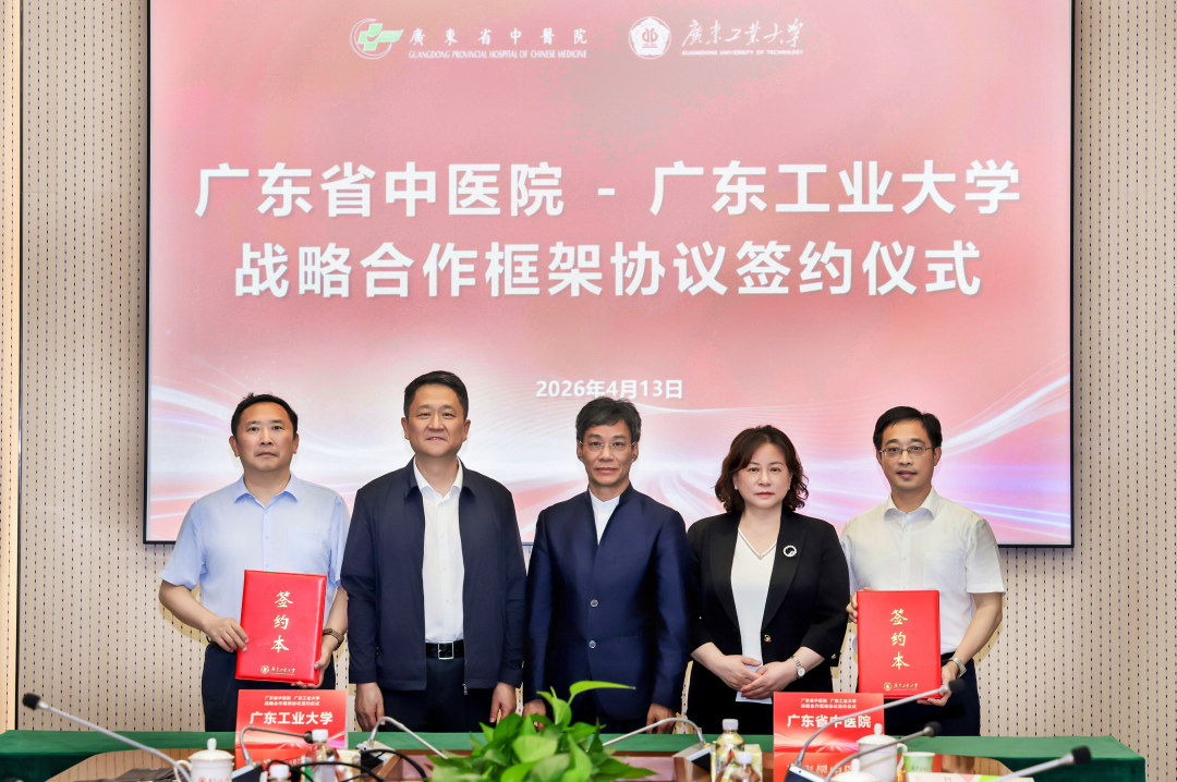 4月13日,广东工业大学(以下简称“广工”)与广东省中医院(以下简称“省中医”)签订战略合作框架协议,正式建立深度战略伙伴关系,共同开启医工交叉融合、协同创新新篇章,为中医药现代化、智能化发展注入强劲科技动力,护航“健康中国”。
