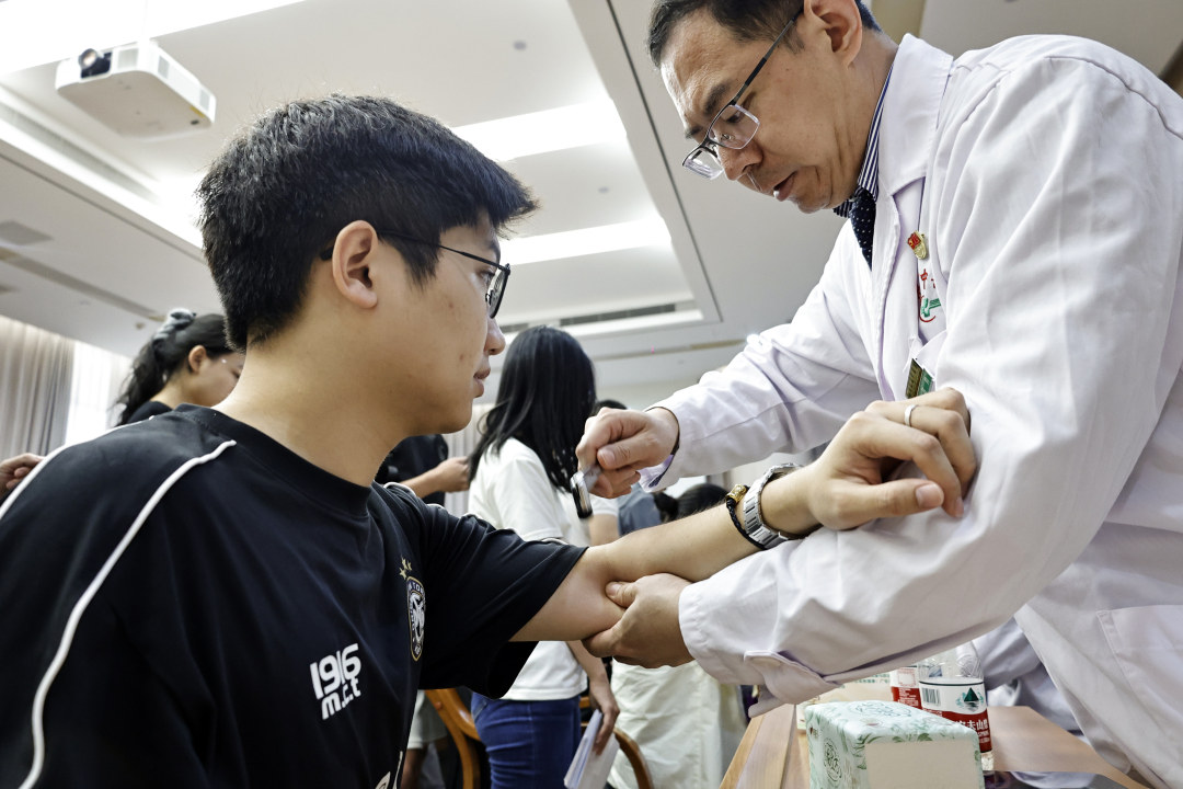 义诊咨询区汇集11个专科、12名骨干专家,覆盖脊柱、皮肤、妇科、呼吸、内分泌、神经、消化等领域,为师生提供一对一问诊、病因分析与个性化调理方案。“平时压力比较大,晚上睡眠质量差,专家为我搭脉后从饮食、起居、生活习惯等方面提出了调理建议,安心多了。”广工生物医药学院的毛老师说。