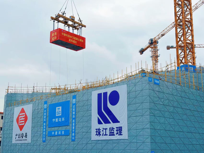 近日,作为广州首个高层模块化配售型保障房项目,天河区奥体新城保障房迎来关键节点——首个MCS混凝土模块完成吊装。模块化建造好比“搭乐高”,建筑模块在工厂生产、运到现场吊装,可减少人工70%,节约工期50%。本次采用的MCS混凝土模块化产品,得房率较同类产品高2%。