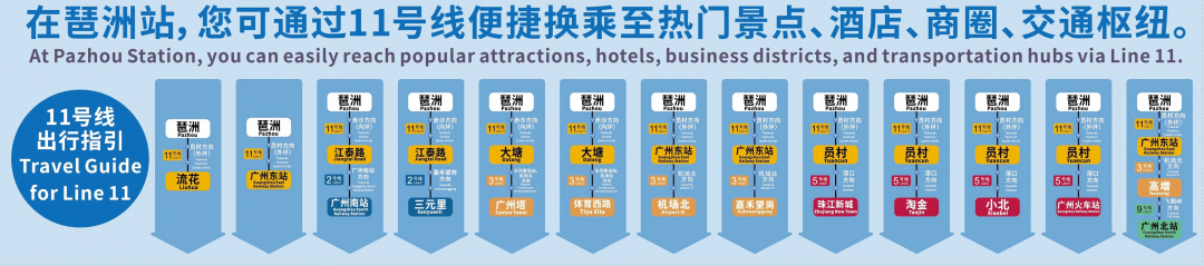 下午散场(17:00-18:00)时8号线压力山大,推荐大家试试11号线。作为“换乘之王”,11号线可以快速分流到天河、白云、荔湾等核心区,避免在站厅长时间排队。