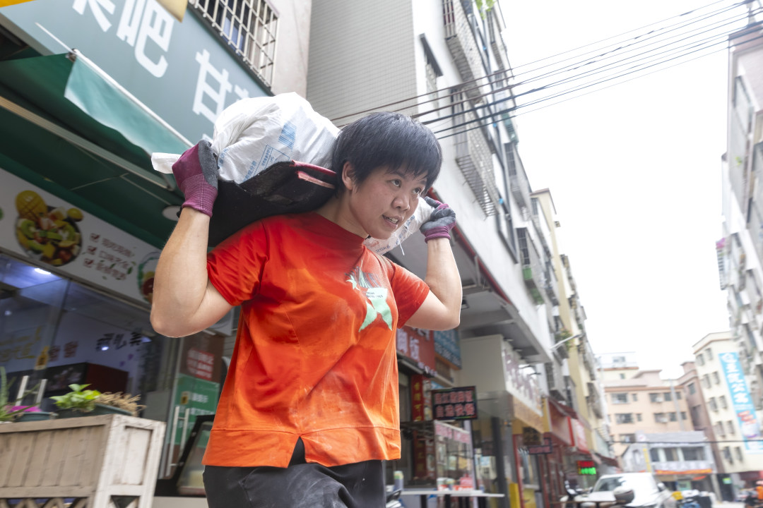 和其他搬运工略有不同的是,魏云桂总会在下楼之后的平面道路上,专门加紧小跑几步,弥补自己和男性之间身材的差距。