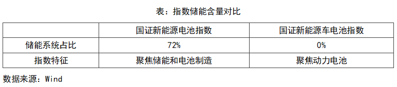 目前,市场上有产品跟踪的指数中,国证新能源电池指数的储能含量最高,达到72%。