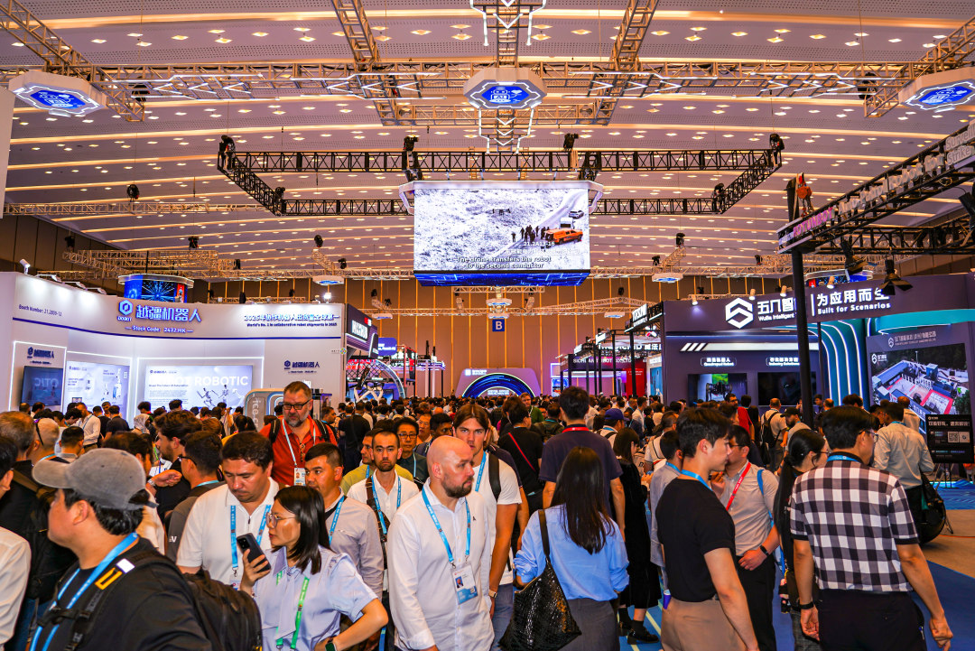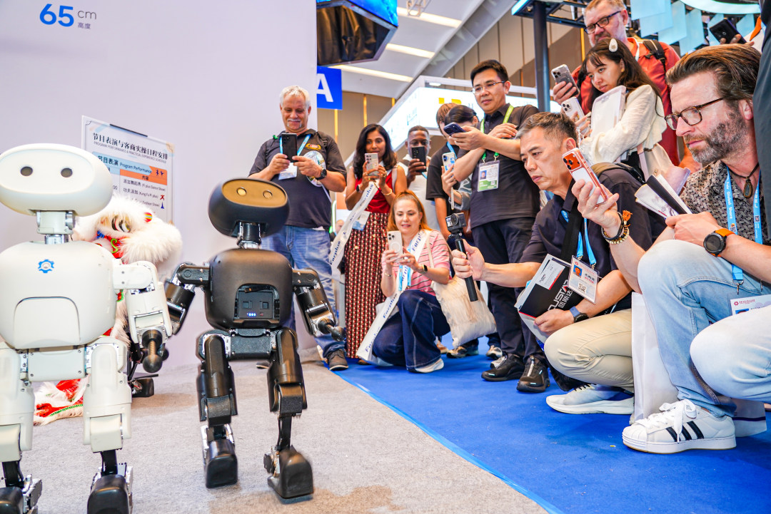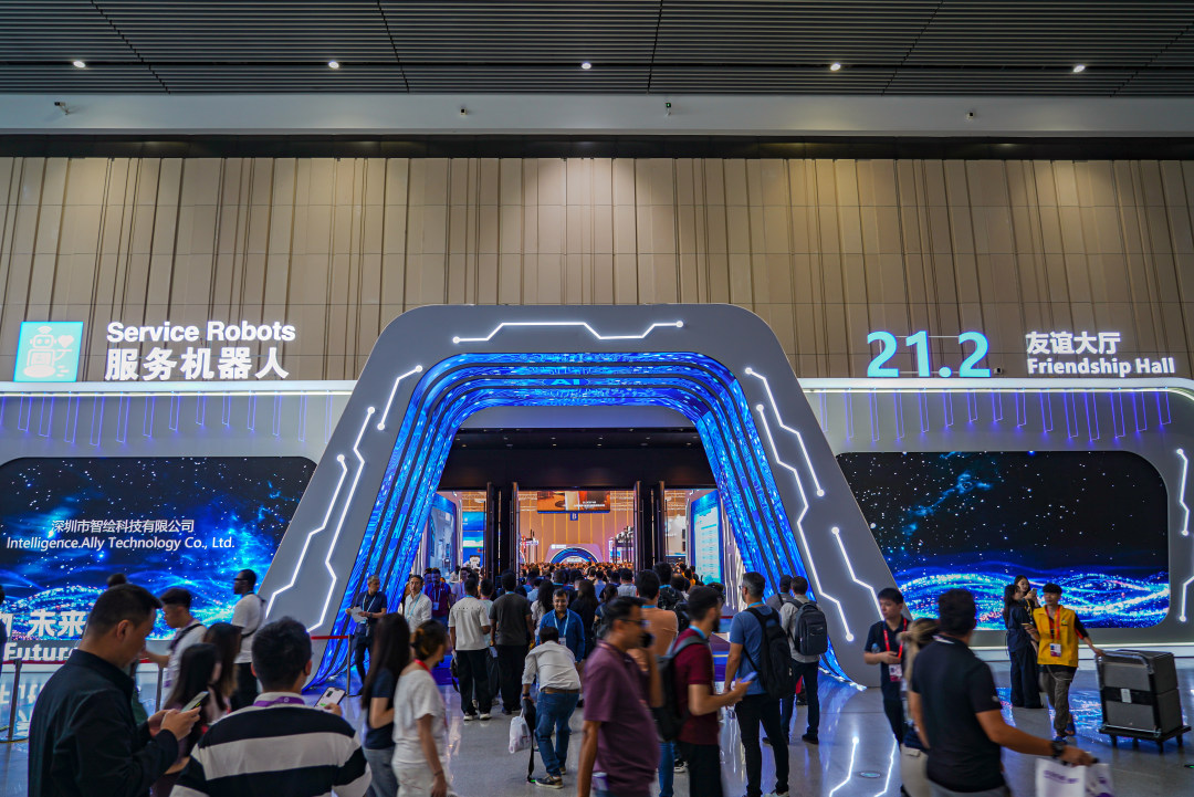 图为服务机器人专区人头攒动。