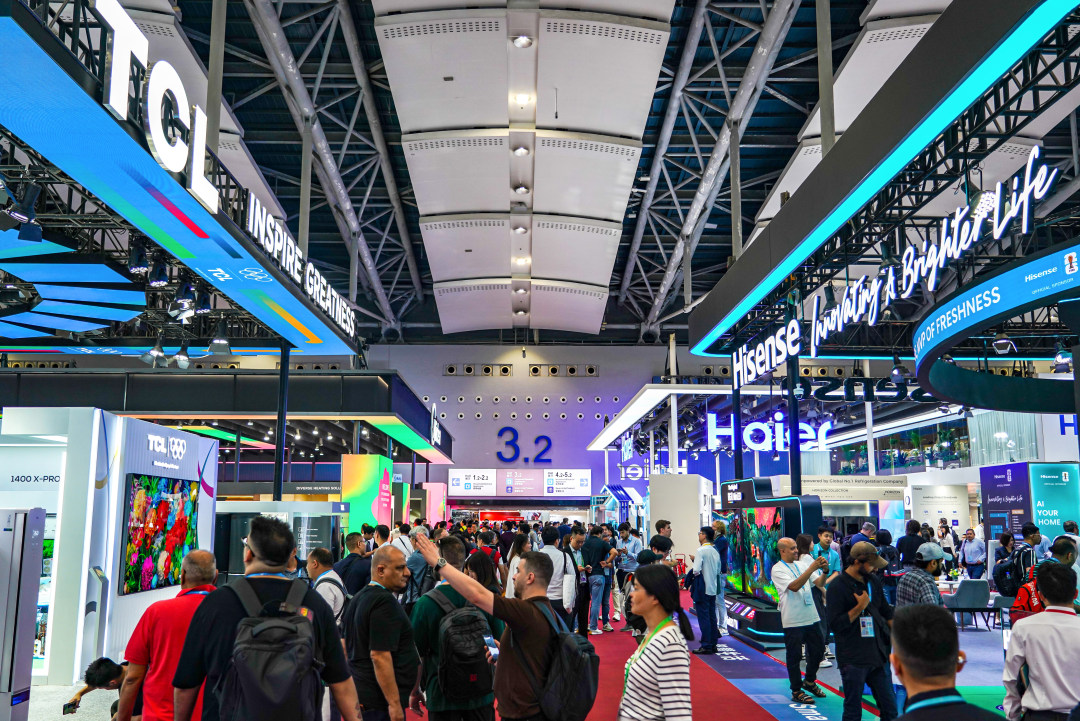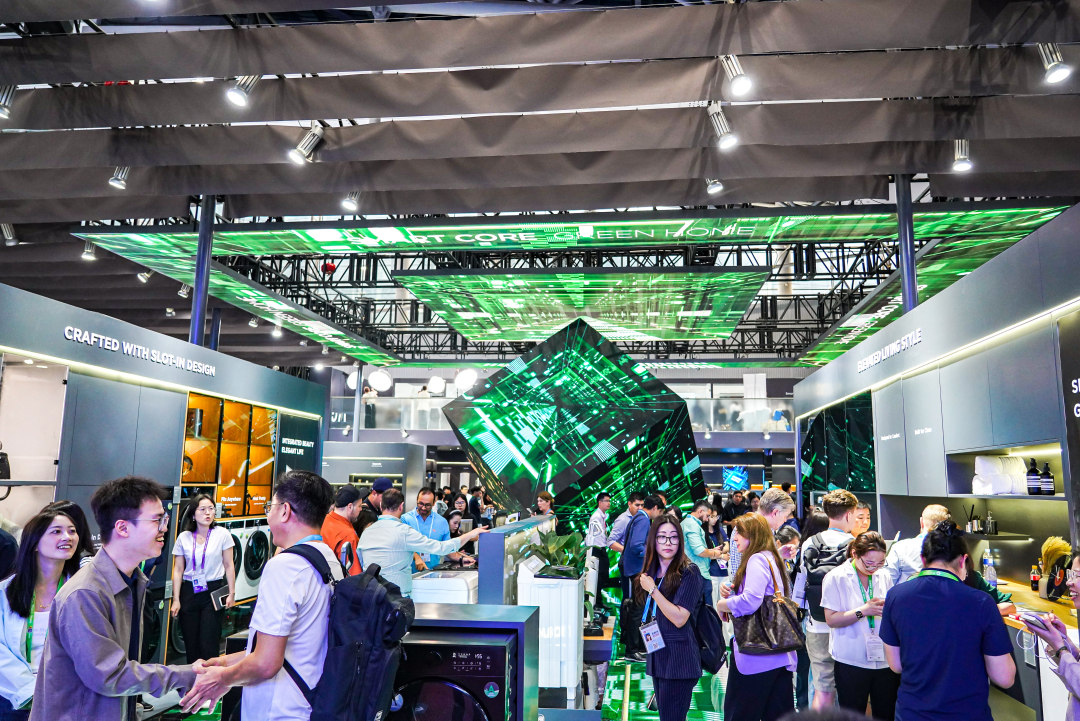 图为家用电器和智慧生活展区人气旺。