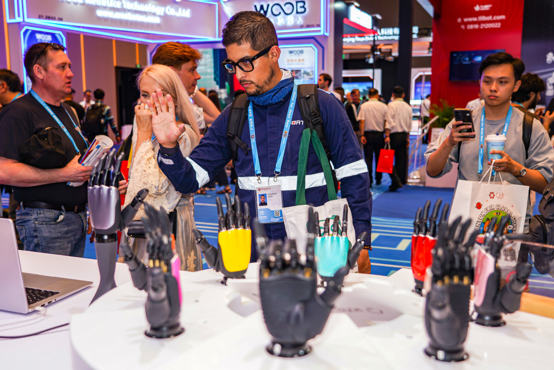 图为一家企业的智能机械手吸引采购商。