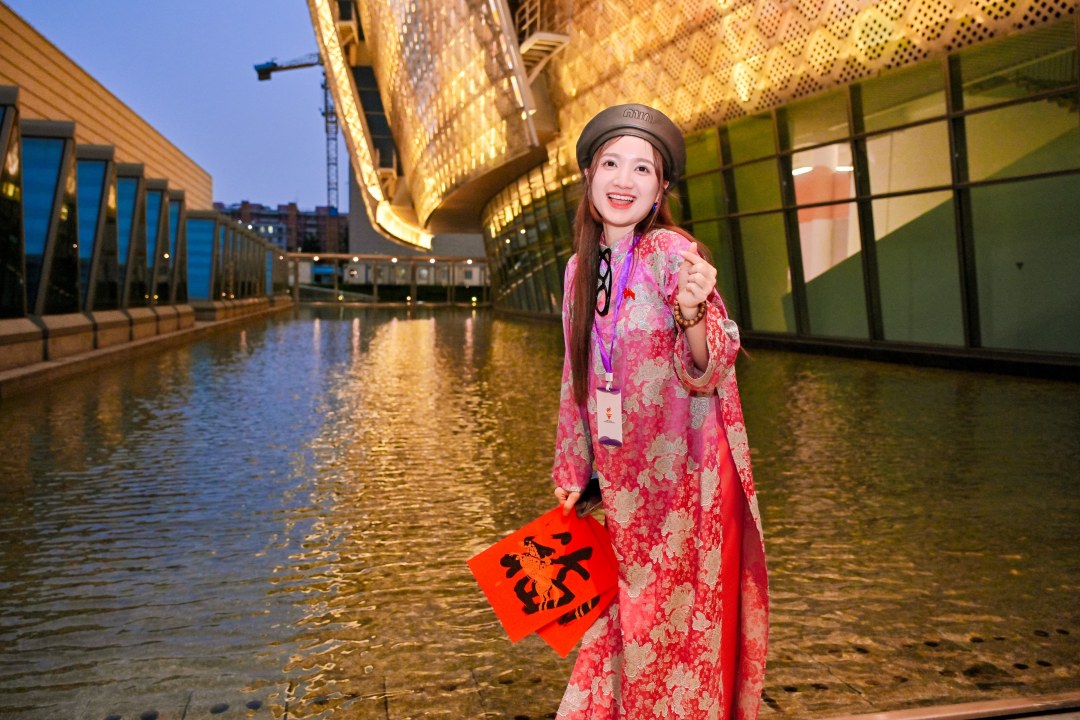 在广州艺术博物院,艺术分团的青年们迎来了别具一格的欢迎礼:珠江钢琴合唱团演绎《越南—中国》《朋友》等经典曲目,中越青年不约而同地合唱起来,歌声交融,情谊流淌。他们参观岭南书法精品展,体验“福”字书写,在“文化传承与创新”对话会上,围绕传统艺术的当代活力各抒己见。越南青年导演俊英现场表示:“讲好中越友好故事,不仅是个人的责任,也是每一个青年的责任。我们可以从身边的小事做起,用真诚的记录和传播,让更多人了解真实的中国和真实的越南。”