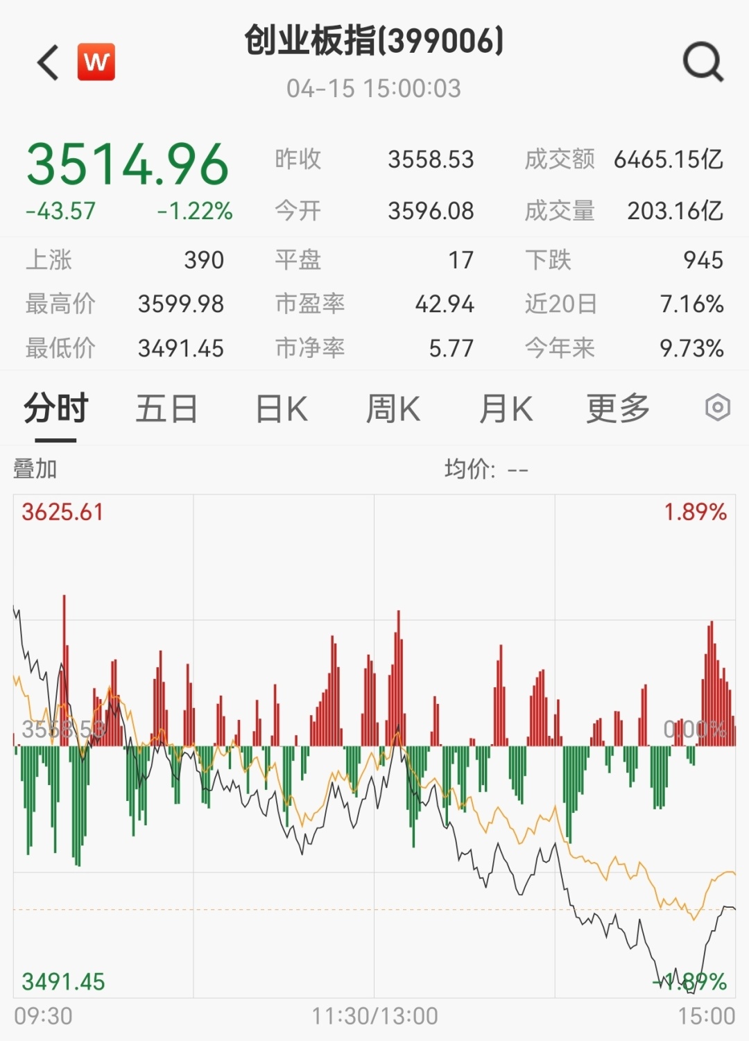 4月15日,A股高开低走,创业板指早盘刷新2015年6月19日以来新高之后翻绿,收盘跌逾1%。上证指数收涨0.01%报4027.21点,深证成指跌0.97%。