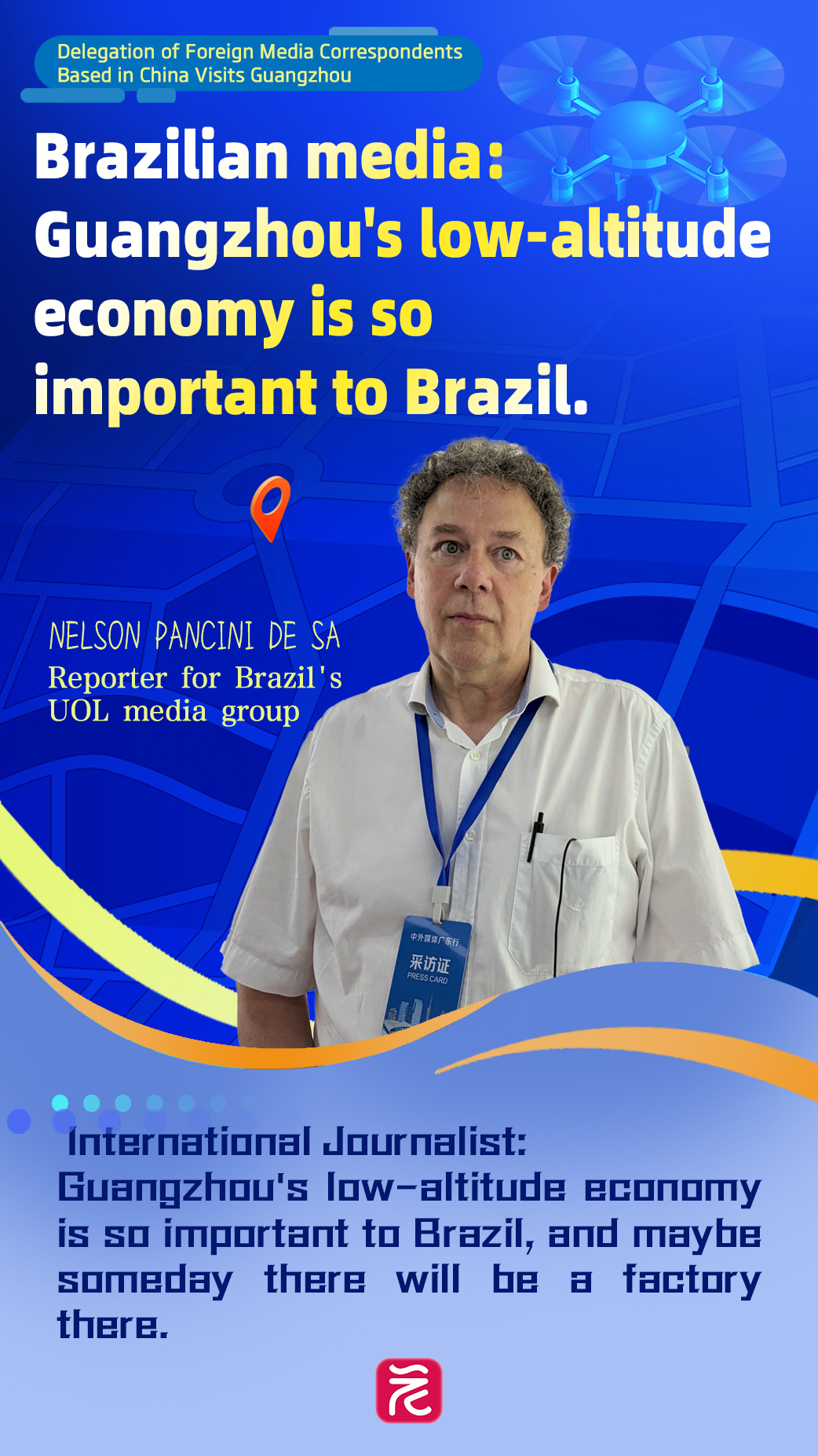 Brazilian journalist Nelson Pancini de Sa showed great interest in EHang's eVTOL during the visit. He believes that the low-altitude economy now being built in Guangzhou is "so important for Brazil."