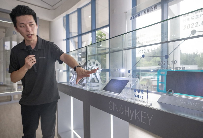“我们的膜电极已经经历3—4个迭代,铂的载量相比最初降低了50%以上,膜电极的寿命也从起初的五六千小时到现在的约3万小时。每千瓦膜电极的成本,也从2020年的700—800元,降低到三四百元,我们预期在未来的几年时间里面成本还会进一步下降。”邹渝泉告诉记者,膜电极占氢燃料电池的整体成本约60%,降低膜电极成本对氢能源的推广至关重要。