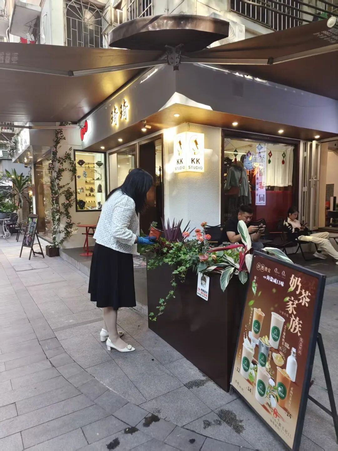 “店门口摆上花,好看多了,顾客也愿意多待一会儿。”林老板笑着说。
