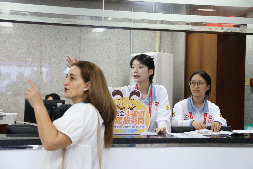 今年广交会首次在馆内设立100个志愿服务岗位,覆盖信息咨询、嘉宾接待、多语种外语服务等内容,100名高校志愿者统一身着崭新的“小蜜蜂”志愿服装,分布在四个展馆重要的咨询口、会议室提供服务,成为广交会最亮丽的风景线。服务首日,广交会客商人流量大,青年志愿者全程坚守岗位、应答不断,面对密集咨询与高频需求始终从容应对、耐心细致。