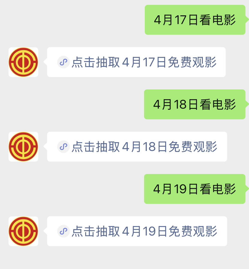 记者获悉,广东省总工会4月免费观影活动今日上线,4月16日至4月19日,8场免费集体观影活动将在广东工人电影院开展。该活动面向全体粤工惠实名认证会员开展,广大职工可进入“广东省总工会”公众号点击“发消息”进入对话框,再发送关键词“日期+看电影”参与电影票抽奖。