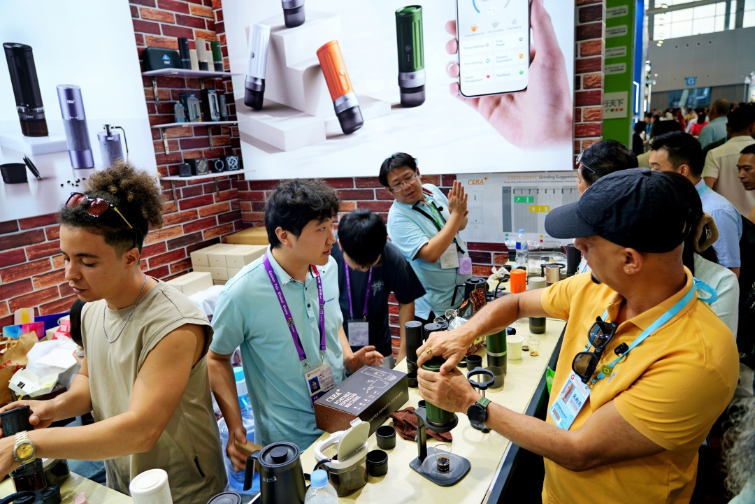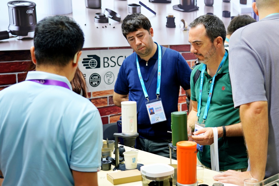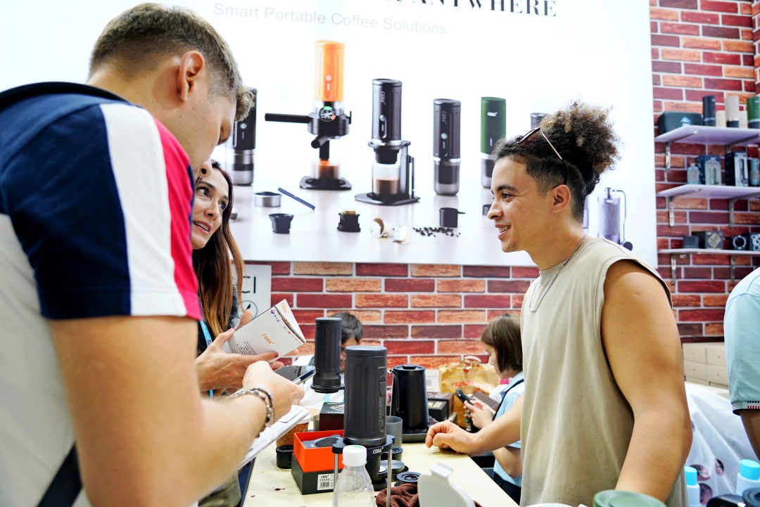 “这是我们的‘CERA+’便携式意式浓缩咖啡机,你可以带着它去任何想去的地方。”ANASS举起手中的保温杯大小的咖啡机说,“它使用方便,能够快速充电和加热,1分多钟就能完成萃取。”ANASS是珠海市香之君科技股份有限公司的海外业务员,只见他熟练地将咖啡豆放入手摇磨豆机,磨粉、装粉、注水,不到两分钟,一杯香气四溢的浓缩咖啡就递到了采购商手中。
