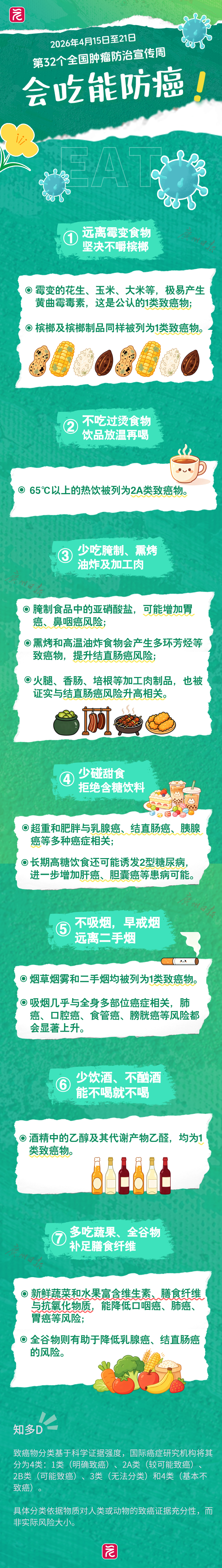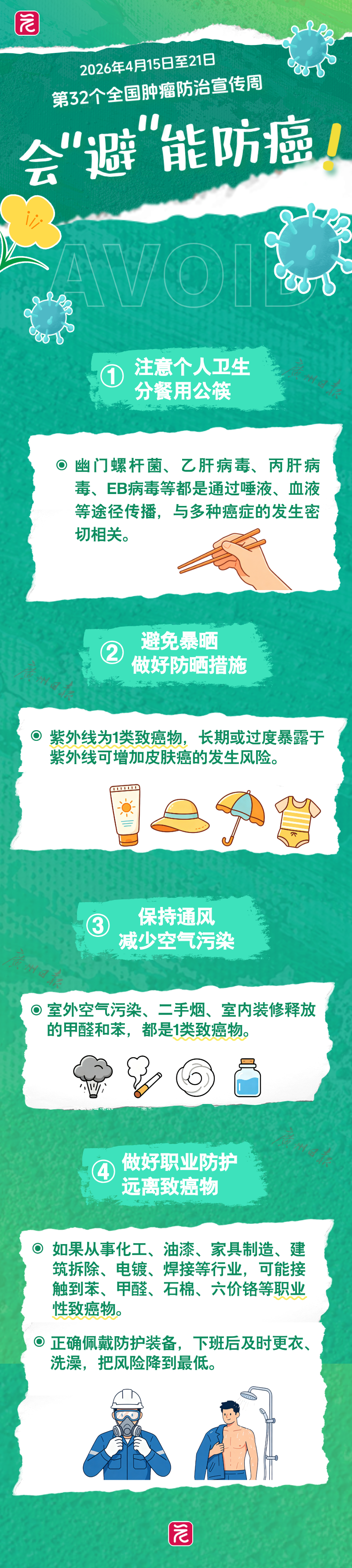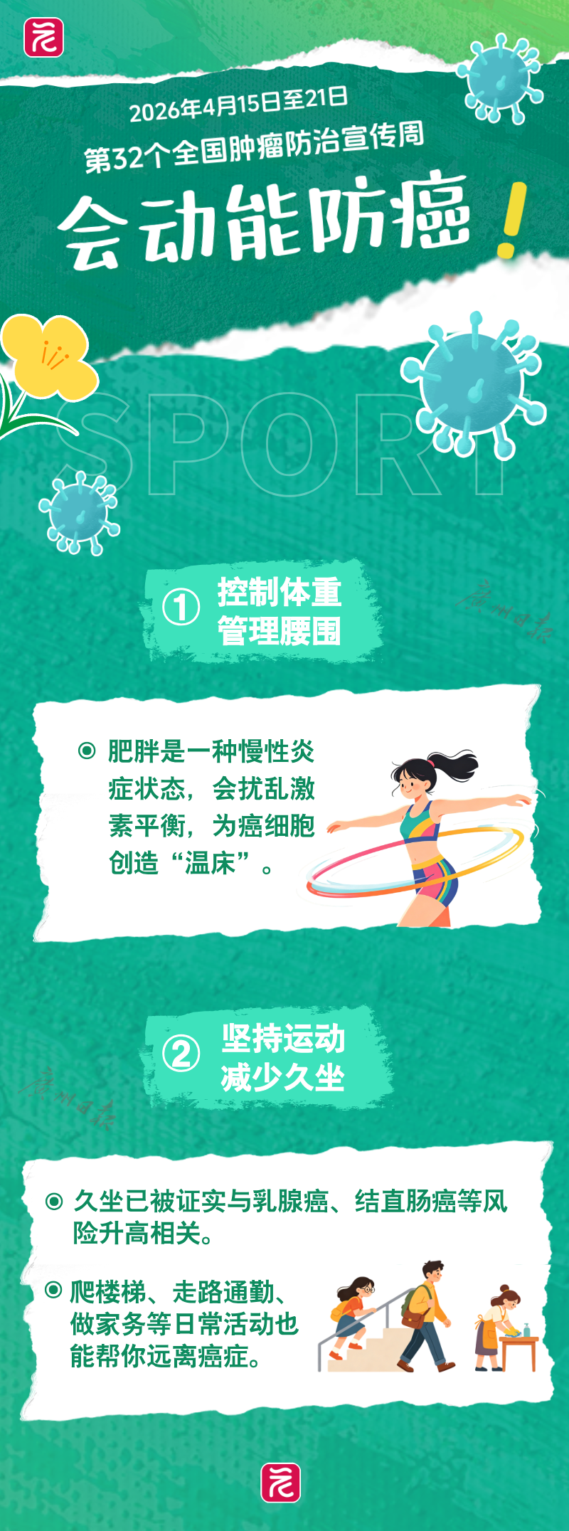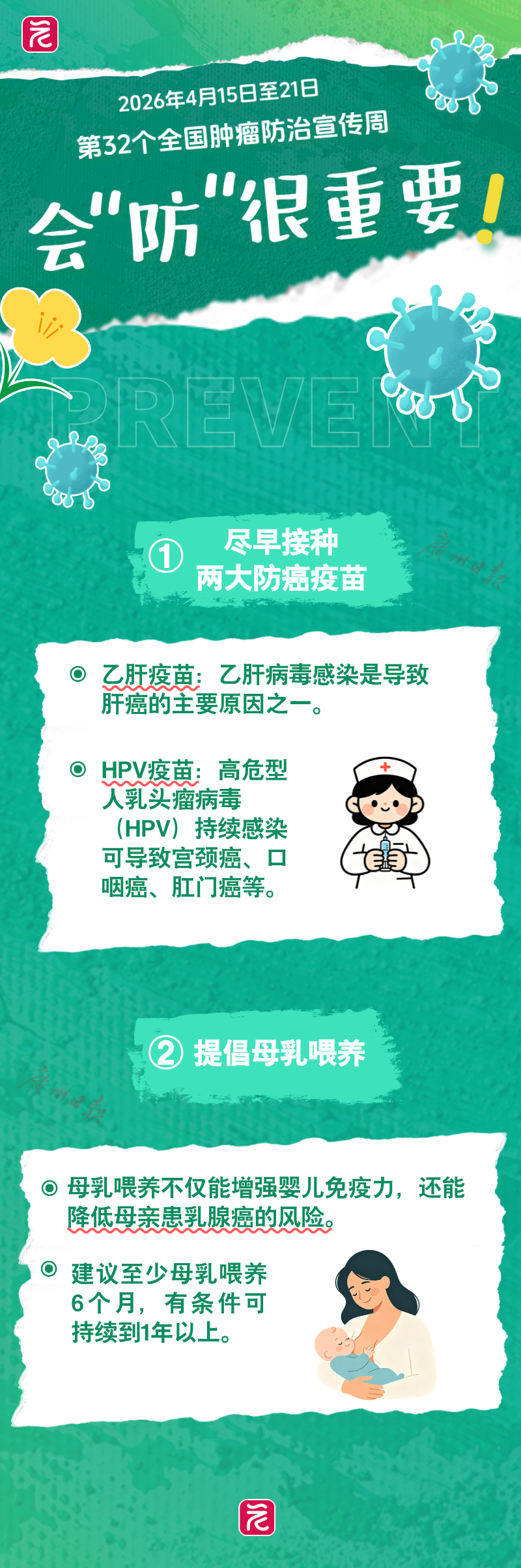 今年4月15日至21日是第32个全国肿瘤防治宣传周,宣传主题是“早防早筛早治 同心携手抗癌”。近日,国家卫生健康委正式发布了《中国防癌健康生活方式守则》。