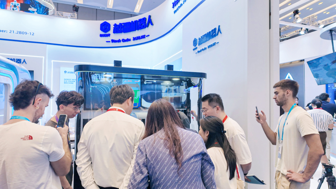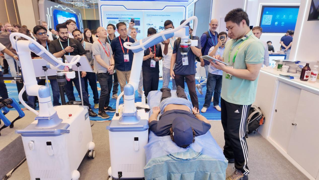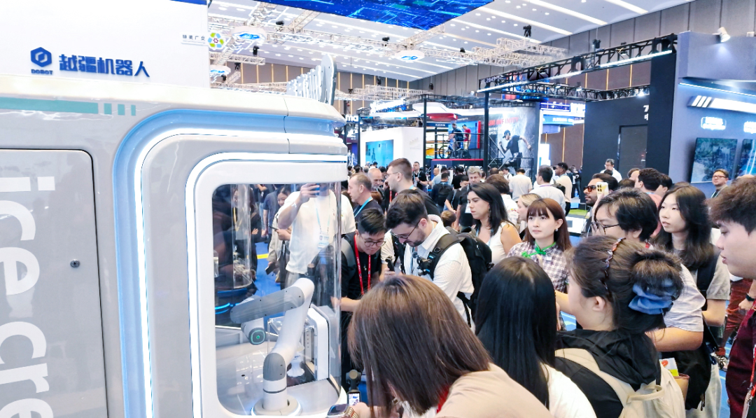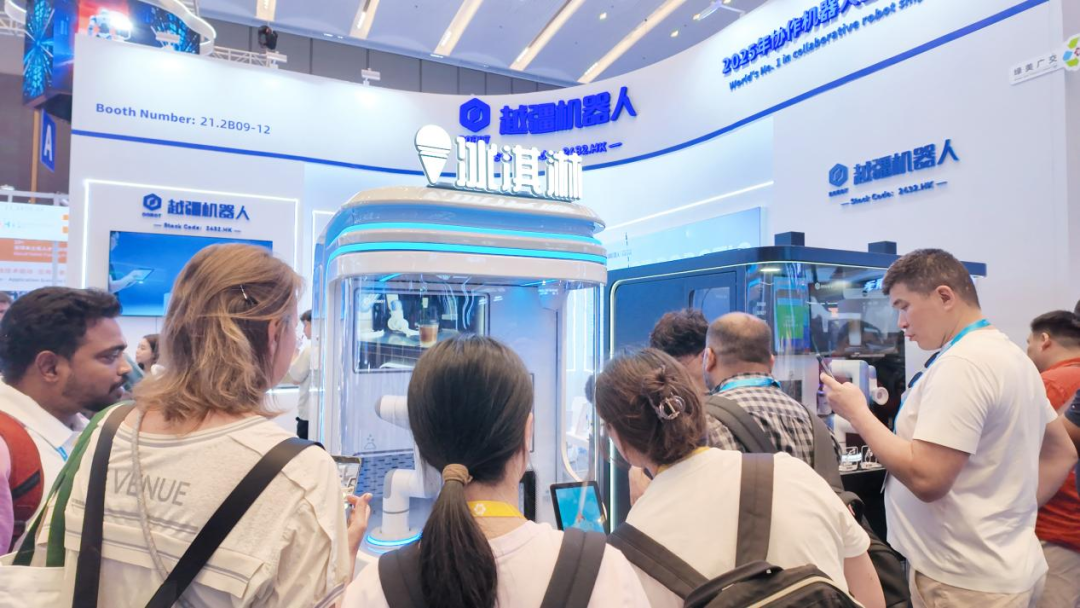 咖啡区里,机器人以人手般的柔顺动作完成咖啡拉花;理疗体验区,体验者闭目躺卧,机械臂沿着经络走向施以恒定力道,力道之精准让围观者啧啧称奇;新零售展台前,扫码下单、机械臂抓取、冰淇淋递出,全程仅需40秒。