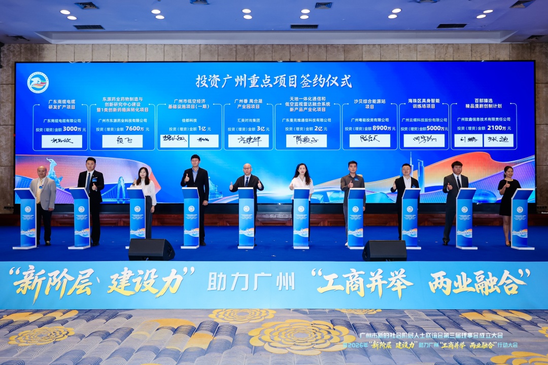 4月15日,广州市新的社会阶层人士联谊会第三届理事会成立大会暨2026年“新阶层建设力”助力广州“工商并举、两业融合”行动大会举行。